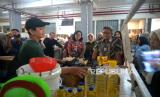 Warga membeli kebutuhan bahan pokok minyak goreng di Pasar Prawirotaman, Yogyakarta, Selasa (12/12/2023). Jelang Nataru 2024 kebutuhan bahan pokok di beberapa pasar tradisional mulai mengalami penaikan. Menurut pedagang naiknya harga bahan pokok bervariasi. Harga cabai rawit masih mahal di harga Rp 90 ribu per kilogram, beras kualitas bagus Rp 15 ribu perkilogram, minyak goreng curah Rp 12 ribu per liter, Naiknya komoditas sayuran dan hasil pertanian imbas dari banyaknya gagal panen karena El Nino pada akhir tahun ini. (FOTO : Republika/Wihdan Hidayat)