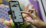 Pedagang berjualan melalui siaran langsung TikTok Shop di Pasar Tanah Abang, Jakarta, Selasa (12/12/2023). TikTok resmi mengumumkan untuk membuka kembali fitur belanja di dalam aplikasi mulai Selasa 12 Desember yang bermitra bersama PT GoTo dengan menggelontorkan investasi senilai Rp1,5 miliar dolar AS atau sekitar Rp23,4 triliun. Menurut pedagang pada hari pertama pengaktifan kembali fitur TikTok Shop dalam kurun waktu setengah hari baru terdapat 1.000 penonton saat melakukan siaran langsung. (FOTO : Republika/Putra M. Akbar)