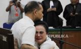 REPUBLIKA.CO.ID, PALANGKA RAYA -- Terdakwa kasus korupsi dan gratifikasi di lingkungan Pemerintah Kabupaten Kapuas Ben Brahim S Bahat (kiri) memeluk istrinya Ary Egahni (kanan) usai menjalani sidang putusan di Pengadilan Tipikor, Palangka Raya, Kalimantan Tengah, Selasa (12/12/2023).