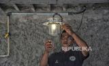 Pemilik perternakan sapi Burhani menyalakan lampu petromak yang menggunakan energi biogas dari kotoran sapi di perternakan miliknya Kawasan Cikoko, Pancoran, Jakarta, Rabu (13/12/2023). Biogas tersebut dapat menjadi solusi penanganan limbah kotoran sapi menjadi energi bermanfaat untuk dilingkungan sekitar. Biogas tersebut saat ini mampu menyalakan kompor dan lampu. Saat ini sudah 6 rumah yang merasakan dan memanfaatkan energi biogas tersebut. (FOTO : Republika/Prayogi)