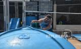Pekerja memeriksa instalasi keran kontrol pada tangki biogas yang berasal dari kotoran sapi di perternakan sapi Kawasan Cikoko, Pancoran, Jakarta, Rabu (13/12/2023). Biogas tersebut dapat menjadi solusi penanganan limbah kotoran sapi menjadi energi bermanfaat untuk dilingkungan sekitar. Biogas tersebut saat ini mampu menyalakan kompor dan lampu. Saat ini sudah 6 rumah yang merasakan dan memanfaatkan energi biogas tersebut. (FOTO : Republika/Prayogi)