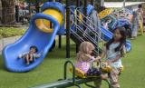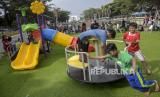 Sejumlah anak didampingi orang tua bermain di kawasan Taman Monumen Perjuangan Rakyat Jawa Barat (Monpera), Bandung, Jawa Barat, Rabu (13/12/2023). Kawasan Taman Monpera tersebut merupakan salah satu bagian dari proyek penataan dan revitalisasi yang dilakukan oleh Pemerintah Provinsi Jawa Barat. Meski belum sempat diresmikan, kawasan taman tersebut sudah ramai dikunjungi oleh pengunjung dari dalam dan luar Kota Bandung. (FOTO : REPUBLIKA/ABDAN SYAKURA)