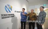 Managing Director TMI Hajime Jodai, President Director TMI Sancoyo Setiabudi,  Finance Director TMI Shiro Kiyohara (dari kiri) berbincang saat akan menggelar laporan Kinerja Keuangan Tokio Marine Indonesia (TMI) periode 2018-2022 di Jakarta, Rabu (13/12/2023). PT Asuransi Tokio Marine Indonesia (TMI) berkomitmen untuk ekspansi ritel melalui inovasi produk dan digital. Perusahaan patungan antara Tokio Marine Asia Pte Ltd dan PT Asuransi Jasa Indonesia, mencatatkan kinerja positif pendapatan premi sejak 2018 hingga 2022.Pertumbuhan dalam pendapatan premi (gross written premiums) mencapai Rp 2,28 triliun sejak 2018 hingga 2022. (FOTO : Republika/ Tahta Aidilla)