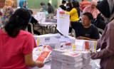 REPUBLIKA.CO.ID, DENPASAR. -- Pekerja menyortir dan melipat surat suara di Gudang KPU Denpasar, Bali, Rabu (13/12/2023).