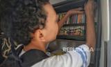 REPUBLIKA.CO.ID,JAKARTA -- Sejumlah anak membaca buku di mobil perpustakaan keliling di Kawasan Jalan Bonang, Menteng, Jakarta, Kamis (14/12/2023).