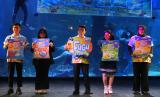 Marketing Director Oops Fugu & Friends Adrianus Priyo (tengah), bersama Founder Rumah Harapan Indonesia Valencia Mieke Randa (kanan) dan Marketing Communication Manager Jakarta Aquarium & Safari Natalia Poetri Handayani (kiri), memperkenalkan rangkaian varian baru Oops Fugu & Friends kepada pengunjung Jakarta Aquarium & Safari, pada acara Launching New Packaging & Varian Oops Fugu & Friends bertema Bring Joy & Happiness To Children. (FOTO : Dok.Republika)