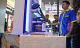 Karyawan mengoperasikan produk alat pembuat batik digital pada Gebyar IKMA 2023 di Mall Kota Kasablanka, Jakarta, Kamis (14/12/2023). Gebyar IKMA 2023 tersebut mengusung tema Innovate Locally, Thrive Globally Building Sustainable Ecosystem Through Small and Medium Inustries yang diikuti 113 IKM binaan guna mendorong penciptaan dan penguatan IKM. (FOTO : Dok Republika)