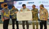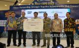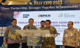 REPUBLIKA.CO.ID, JAKARTA -- Anggota Badan Pelaksana Badan Pengelola Keuangan Haji (BPKH) Harry Alexander bersama Direktur Utama PT Bank Muamalat Indonesia Tbk Indra Falatehan, Direktur Operasi dan Digital Bank Muamalat Wahyu Avianto, SEVP Retail Banking Bank Muamalat Dedy Suryadi Dharmawan dan SVP Consumer Business PT Pos Indonesia Zuhed Nur menghadiri penandatanganan mock up Perjanjian Kerja Sama (PKS) kemitraan pendaftaran porsi haji reguler antara Bank Muamalat dan Pos Indonesia di Jakarta, Kamis (14/12/2023). Melalui kerja sama ini, Bank Muamalat akan mendapatkan referensi calon jemaah haji dari Pos Indonesia untuk melakukan setoran awal dan pendaftaran porsi haji reguler di Bank Muamalat. Adapun masyarakat, termasuk nasabah Bank Muamalat, juga dapat melakukan pendaftaran porsi haji reguler melalui jaringan kantor pos di seluruh Indonesia.