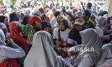 REPUBLIKA.CO.ID, CIAMIS -- Warga antre membeli paket sembako pada bazar sembako murah di Desa Ciharalang, Kabupaten Ciamis, Jawa Barat, Jumat (15/12/2023).