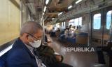 Penumpang mengenakan masker saat berada di gerbong kereta rel listrik (KRL) Commuterline Jabodetabek, Stasiun Jakarta Kota, Jakarta, Jumat (15/12/2023). Kementerian Kesehatan (Kemenkes) melaporkan kasus aktif COVID-19 di Indonesia mencapai 6.223 pasien atau meningkat 0,1 persen dalam sepekan terakhir. (FOTO : ANTARA FOTO/Iggoy el Fitra)