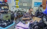 REPUBLIKA.CO.ID, JAKARTA -- Teknisi memeriksa kondisi kamera konsumen di toko servis kamera, Pasar Baru, Jakarta pada Jumat (15/12/2023).