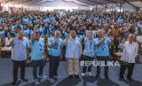 BOGOR -- Capres nomor urut 2 Prabowo Subianto menghadiri konsolidasi pendukungnya yang digelar di Sentul International Convention Center (SICC), Kabupaten Bogor, Sabtu (16/12/2023).