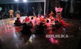 Penampilan tari jaipongan saat Pertunjukan Seni Longser berjudul Kawin Paksa Kapaksa Kawin karya Hermana HMT, dengan sutradara Hafidz Permana yang digelar Longser Bandoengmoi bersama UPTD PKJB Disparbud Jawa Barat, di Gedung Pusat Kebudayaan Jawa Barat, Jalan Naripan Kota Bandung, Sabtu (16/12/2023). Kegiatan tersebut sebagai salah satu hiburan untuk masyarakat di akhir pekan, upaya pelestarian seni tradisi, termasuk beragam seni yang ditampilkan di dalamnya, dan pemanfaatan ruang kebudayaan sebagai bagaian dari pariwisata Jawa Barat. (FOTO : Edi Yusuf/Republika)