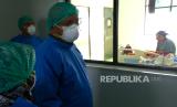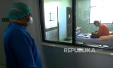 REPUBLIKA.CO.ID, KALBAR -- Penjabat Gubernur Kalimantan Barat Harisson melihat kondisi pasien Covid-19 di ruang isolasi khusus penyakit infeksi RSUD dr Soedarso, Pontianak, Kalimantan Barat, Ahad (17/12/2023). Harisson mengatakan bahwa per hari ini terdapat empat warga Kalbar yang terkonfirmasi positif Covid-19, yaitu dua pasien dirawat di ruang isolasi khusus RSUD dr Soedarso dan dua tenaga medis yang melakukan isolasi mandiri setelah diduga tertular dari pasien.
