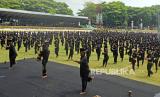REPUBLIKA.CO.ID, SERANG -- Sejumlah pesilat mengikuti atraksi pencak silat jurus Tapak Karuhun Banten di Serang, Ahad (17/12/2023). Sebanyak 4.500 pesilat mengikuti pemecahan rekor MURI (Museum Rekor Indonesia) untuk memainkan jurus silat Tapak Karuhun terbanyak guna melestarikan seni bela diri warisan leluhur Indonesia.