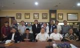 Tamu undangan berfoto usai acara penandatanganan kerjasama di Ruang Sidang Fakultas Sains dan Teknologi UIN Syarif Hidayatullah Jakarta, Senin (18/12/2023). Republika bekerjasama dengan Pusat Sains dan Teknologi UIN Syarif Hidayatullah Jakarta serta Fakultas Sains dan Teknologi UIN Syarif Hidayatullah Jakarta dalam bidang Pendidikan dan Pelatihan Teknologi Informasi (TI), Program Profesional Peserta Didik dan Magang dalam Inovasi Sains dan Teknologi serta hal-hal lain yang terkait dan atau mendukung TI. Kerja Sama ini bertujuan untuk membangun kerja sama yang produktif, efektif dan sinergis. (FOTO : Republika/Prayogi)