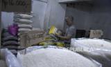 Pedagang menata beras kemasan yang dijual di kiosnya di Pasar Kosambi, Bandung, Jawa Barat, Selasa (19/12/2023). Harga sejumlah bahan pokok menjelang Natal dan Tahun Baru 2024 (Nataru) di pasar tersebut masih stabil dan stok bahan pangan mencukupi hingga akhir tahun. Saat ini harga daging ayam mencapai Rp38 ribu per kilogram, Cabai Rp100 ribu per kilogram, Beras Rp12 ribu hingga Rp15 ribu per kilogram dan telur ayam Rp28 ribu per kilogram. (FOTO : REPUBLIKA/ABDAN SYAKURA)