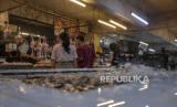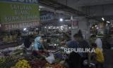 REPUBLIKA.CO.ID, BANDUNG-- Pedagang sayuran melayani pembeli di kiosnya di Pasar Kosambi, Bandung, Jawa Barat, Selasa (19/12/2023).