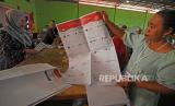 REPUBLIKA.CO.ID, SERANG. -- Pekerja memeriksa surat suara sebelum dilipat di Gudang KPU Kota Serang, Banten, Selasa (19/12/2023).
