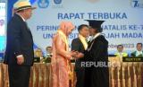 REPUBLIKA.CO.ID, YOGYAKARTA. -- Rapat Terbuka Universitas Gajah Mada dalam rangka Dies Natalis ke-74 UGM di Grha Sabha Pramana, Yogyakarta, Selasa (19/12/2023).