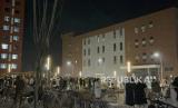 Para mahasiswa berkumpul di luar ruangan setelah dievakuasi dari asrama mereka di kampus Universitas Lanzhou Yuzhong di Lanzhou di provinsi Gansu, Tiongkok barat laut, Selasa, (19/12/2023). (FOTO : Wang Xi via AP)