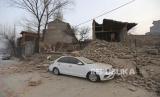 Sebuah kendaraan sebagian tertutup oleh bangunan yang runtuh setelah gempa bumi di desa Dahejia di wilayah Jishishan di provinsi Gansu, Tiongkok barat laut, Selasa, (19/12/2023). (FOTO : Chinatopix via AP)