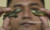 REPUBLIKA.CO.ID, CIAMIS -- Kura-kura hijau atau kura red-ear slider (Trachemys scripta elegans) menetas dalam inkubator di penangkaran War's turtle Desa Sukamaju, Kabupaten Ciamis, Jawa Barat, Selasa (19/12/2023).