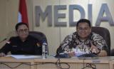 Ketua Bawaslu Rahmat Bagja (kanan) didampingi Anggota Bawaslu Puadi (kiri) memberikan keterangan terkait isu aktual pada tahapan kampanye di Kantor Bawaslu, Jakarta, Selasa (19/12/2023). 22 hari awasi kampanye, Bawaslu lakukan 90.716 upaya pencegahan, tangani 70 dugaan pelanggaran, 126 dugaan pelanggaran konten internet (siber) terkait Pemilu, dan menyelesaikan 13 sengketa proses antar-peserta Pemilu. (FOTO : Republika/Prayogi)