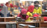 Pekerja mengerjakan pembuatan rokok kretek di Bantul, Yogyakarta, Selasa (19/12/2023). Direktorat Jenderal Bea dan Cukai Kementerian Keuangan memastikan kenaikan tarif cukai hasil tembakau (CHT) rata-rata 10 persen per Januari 2024. Sebanyak 17 juta pita cukai baru disiapkan untuk mendukung penyesuaian tarif pada Januari 2024. (FOTO : Republika/ Wihdan Hidayat)