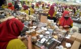 Pekerja mengerjakan pembuatan rokok kretek di Bantul, Yogyakarta, Selasa (19/12/2023).