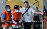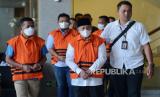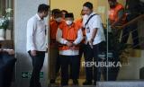 REPUBLIKA.CO.ID, JAKARTA-- Tersangka Gubernur Maluku Utara, Abdul Ghani Kasuba, bersama tersangka lainnya menaiki mobil seusai dihadirkan dalam konferensi pers pengumuman penahanan tersangka di Gedung KPK Merah Putih, Jakarta, Rabu (20/12/2023).