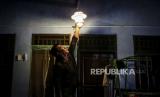 Peternak menyalakan lampu yang menggunakan energi dari limbah kotoran sapi di Pancoran, Jakarta, Rabu (20/12/2023). Sebanyak tujuh rumah warga di sekitar peternakan sapi tersebut memanfaatkan limbah kotoran ternak untuk menjadi energi biogas dalam kehidupan sehari-hari. (FOTO : Antara/Rivan Awal Lingga )
