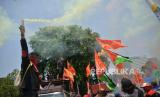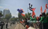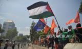 Sejumlah Buruh melakukan aksi unjuk rasa di depan Kedubes Amerika, Jakarta, Kamis (21/12/2023). Aksi yang dilakukan oleh partai buruh dan serikat buruh ini menyerukan penghentian segera konflik berkepanjangan antara Israel dan Palestina. (FOTO : Republika/Prayogi)