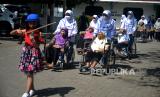 Warga Lansia panti wredha mengikuti kirab bersama calon pengantin saat Nikah Massal di Panti Wredha Budi Dharma, Yogyakarta, Kamis (21/12/2023). Sebanyak empat pasangan pengantin mengikuti nikah massal dengan tema Nikah Bareng Restu Ibu dalam rangka menyambut Hari Ibu. Dengan digelarnya nikah massal di Panti Wredha untuk mengingatkan kita akan kasih sayang orang tua. Selain itu, yang unik prosesi ijab qobul dilakukan di dalam ambulan. (FOTO : Republika/ Wihdan Hidayat)