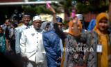 Calon pengantin diarak bersama warga Lansia panti wredha saat Nikah Massal di Panti Wredha Budi Dharma, Yogyakarta, Kamis (21/12/2023). Sebanyak empat pasangan pengantin mengikuti nikah massal dengan tema Nikah Bareng Restu Ibu dalam rangka menyambut Hari Ibu. Dengan digelarnya nikah massal di Panti Wredha untuk mengingatkan kita akan kasih sayang orang tua. Selain itu, yang unik prosesi ijab qobul dilakukan di dalam ambulan. (FOTO : Republika/ Wihdan Hidayat)
