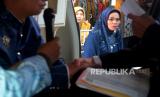 Pengantin perempuan menyimak prosesi ijab qobul dalam ruangan ambulan saat Nikah Massal di Panti Wredha Budi Dharma, Yogyakarta, Kamis (21/12/2023). Sebanyak empat pasangan pengantin mengikuti nikah massal dengan tema Nikah Bareng Restu Ibu dalam rangka menyambut Hari Ibu. Dengan digelarnya nikah massal di Panti Wredha untuk mengingatkan kita akan kasih sayang orang tua. Selain itu, yang unik prosesi ijab qobul dilakukan di dalam ambulan. (FOTO : Republika/ Wihdan Hidayat)
