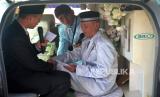 Pengantin menjalani prosesi ijab qobul dalam ruangan ambulan saat Nikah Massal di Panti Wredha Budi Dharma, Yogyakarta, Kamis (21/12/2023). Sebanyak empat pasangan pengantin mengikuti nikah massal dengan tema Nikah Bareng Restu Ibu dalam rangka menyambut Hari Ibu. Dengan digelarnya nikah massal di Panti Wredha untuk mengingatkan kita akan kasih sayang orang tua. Selain itu, yang unik prosesi ijab qobul dilakukan di dalam ambulan. (FOTO : Republika/ Wihdan Hidayat)