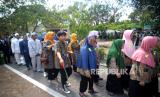 Warga Lansia panti wredha menyambut calon pengantin saat Nikah Massal di Panti Wredha Budi Dharma, Yogyakarta, Kamis (21/12/2023). Sebanyak empat pasangan pengantin mengikuti nikah massal dengan tema Nikah Bareng Restu Ibu dalam rangka menyambut Hari Ibu. Dengan digelarnya nikah massal di Panti Wredha untuk mengingatkan kita akan kasih sayang orang tua. Selain itu, yang unik prosesi ijab qobul dilakukan di dalam ambulan. (FOTO : Republika/ Wihdan Hidayat)