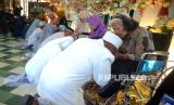 REPUBLIKA.CO.ID, YOGYAKARTA -- Calon pengantin melakukan sungkeman sebelum ijab qobul saat Nikah Massal di Panti Wredha Budi Dharma, Yogyakarta, Kamis (21/12/2023).