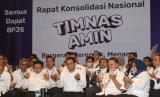 REPUBLIKA.CO.ID,JAKARTA -- Pasangan calon presiden dan calon wakil presiden nomor urut 1 Anies Baswedan (kiri) dan Muhaimin Iskandar (kanan) menyanyikan yel-yel penyemangat dalam konsolidasi Tim Pemenangan Anies-Muhaimin (Amin) di Jakarta, Kamis (21/12/2023).