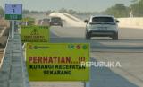 REPUBLIKA.CO.ID, BOYOLALI. -- Sejumlah rambu peringatan terpasang di pinggir jalur fungsional tol Solo-Yogyakarta di Boyolali, Jawa Tengah, Jumat (22/12/2023).