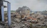 REPUBLIKA.CO.ID,LEBAK -- Kondisi rumah yang telah terbakar di Kampung Karian, Lebak, Banten, Jumat (22/12/2023). Puluhan rumah yang berada di daerah terdampak pembangunan Bendungan Karian tersebut dibakar dan dirobohkan oleh warga setempat agar kayunya tidak mengambang setelah kawasan tersebut dialiri air.
