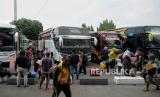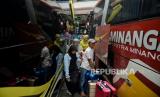 Calon penumpang menunggu keberangkatan bus tujuan Sumatera di Terminal Kampung Rambutan, Jakarta, Sabtu (23/12/2023). Jelang libur Natal dan Tahun Baru 2024, terminal Kampung Rambutan dipadati calon penumpang tujuan Lampung, Palembang dan Padang dengan jumlah penumpang mengalami kenaikan hingga 25 persen dari hari biasanya. Selain itu, Kementerian Perhubungan juga menyediakan angkutan mudik gratis Natal 2023 dan Tahun Baru 2024 sebanyak 90 bus dengan jumlah penumpang mencapai 3.600 pemudik. (FOTO : Republika/Thoudy Badai)