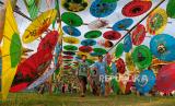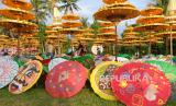 REPUBLIKA.CO.ID, MAGELANG -- Pengunjung berjalan di lorong pameran instalasi payung Chatra saat Borobudur Tridaya Festival 2023 di lapangan Ringinputih, Borobudur, Magelang, Jawa Tengah, Sabtu (23/12/2023). Borobudur Tridaya Festival 2023 diprakarsai pemuda dari 20 desa di kecamatan Borobudur dengan menggelar pentas seni tradisonal, pameran instalasi candi Borobudur berbahan kain batik dan instalasi 1.980 payung Chatra yang bertujuan untuk mengangkat kearifan lokal menjadi daya tarik wisata.