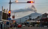 Gunung Marapi mengeluarkan abu vulkanik terlihat di Kota Padang Panjang, Sumatera Barat, Ahad (24/12/2023). (FOTO : ANTARA FOTO)