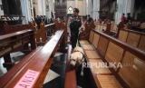 REPUBLIKA.CO.ID, JAKARTA -- Personel kepolisian berjaga di depan Gereja Katedral, Jakarta, Ahad (24/12/2023). Polisi melakukan pengamanan dan sterilisasi di sejumlah gereja guna menjamin keamanan dan kenyamanan umat Nasrani dalam menjalankan ibadah perayaan Natal 2023.