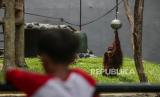 Pengunjung melihat orang utan saat berwisata di Taman Margasatwa Ragunan, Jakarta, Senin (25/12/2023). Taman Margasatwa Ragunan menjadi tempat wisata alternatif bagi masyarakat Jabodetabek saat libur Hari Raya Natal dan Tahun Baru 2024. Tercatat hingga pukul 11.00 WIB, sebanyak 19.688 masyarakat berkunjung ke kebun binatang tersebut untuk melihat berbagai jenis satwa. (FOTO : Republika/Putra M. Akbar)
