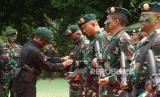 Pangkostrad Letjen TNI Muhammad Saleh Mustafa menerima Brevet kehormatan Intai Tempur Kostrad setelah melaksanakan beberapa materi latihan dan uji kemampuan di Daerah Latihan Kostrad, Gn. Sanggabuana, Karawang. Sabtu (23/12/2023). Materi latihan dan uji kemampuanantara lain, mengatasi jebakan Bobby Trap, keterampilan penggunaan senjata tradisional Panah dan Sumpit dilanjutkan menembak Sniper diakhiri serangan munisi tajam. (FOTO : Dok Republika)