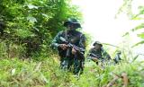 Pangkostrad Letjen TNI Muhammad Saleh Mustafa mengikuti latihan dan uji kemampuan di Daerah Latihan Kostrad, Gn. Sanggabuana, Karawang. Sabtu (23/12/2023). Pangkostrad Letjen TNI Muhammad Saleh Mustafa menerima Brevet kehormatan Intai Tempur Kostrad setelah melaksanakan beberapa materi latihan dan uji kemampuan. Materi latihan dan uji kemampuan antara lain, mengatasi jebakan Bobby Trap, keterampilan penggunaan senjata tradisional Panah dan Sumpit dilanjutkan menembak Sniper diakhiri serangan munisi tajam. (FOTO : Dok Republika)