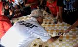 REPUBLIKA.CO.ID, SUKOHARJO -- Capres nomor urut 3, Ganjar Pranowo, menyambangi sentra industri batik Kedunggudel, Kecamatan Sukoharjo, Jawa Tengah, Selasa (26/12/2023).